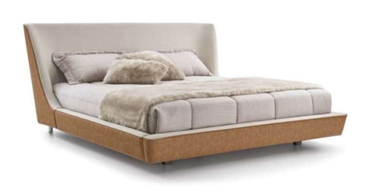 No estande, situado no A 0 2, um dos móveis expostos é a Cama Musa, que tem um formato de concha em sua cabeceira, apoiado por um frame angular revestido com espuma e tecido, sugerindo sofisticação e aconchego.