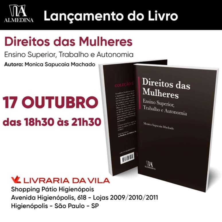 "Direito das Mulheres: Ensino Superior, Trabalho e Autonomia" será lançado nesta quinta-feira (17), na livraria da Vila (Shopping Pátio Higienópolis), a partir das 18h30.