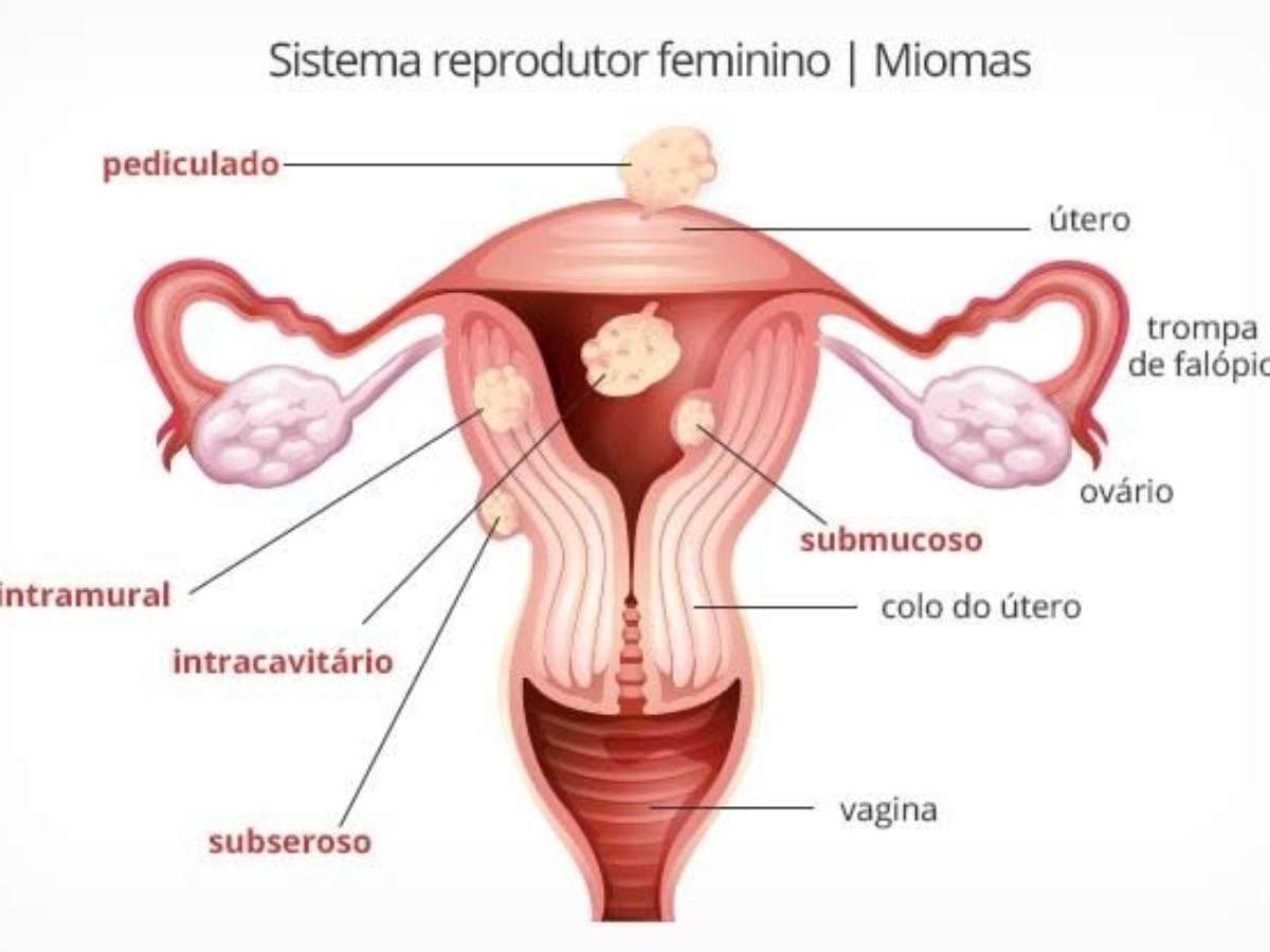 Mioma Uterino - esses tumores benignos, também conhecidos como fibromas ou leiomiomas, surgem no útero e podem causar dores, cólicas, sangramento excessivo, prisão de ventre, perda espontânea de urina, aumento do volume abdominal e ainda dificuldade de engravidar ou de manter uma gestação. Segundo a Febrasgo (Federação Brasileira das Associações de Ginecologia e Obstetrícia), estima que cerca de 80% das mulheres em idade fértil, na faixa dos 30 a 50 anos, tenham miomas uterinos.