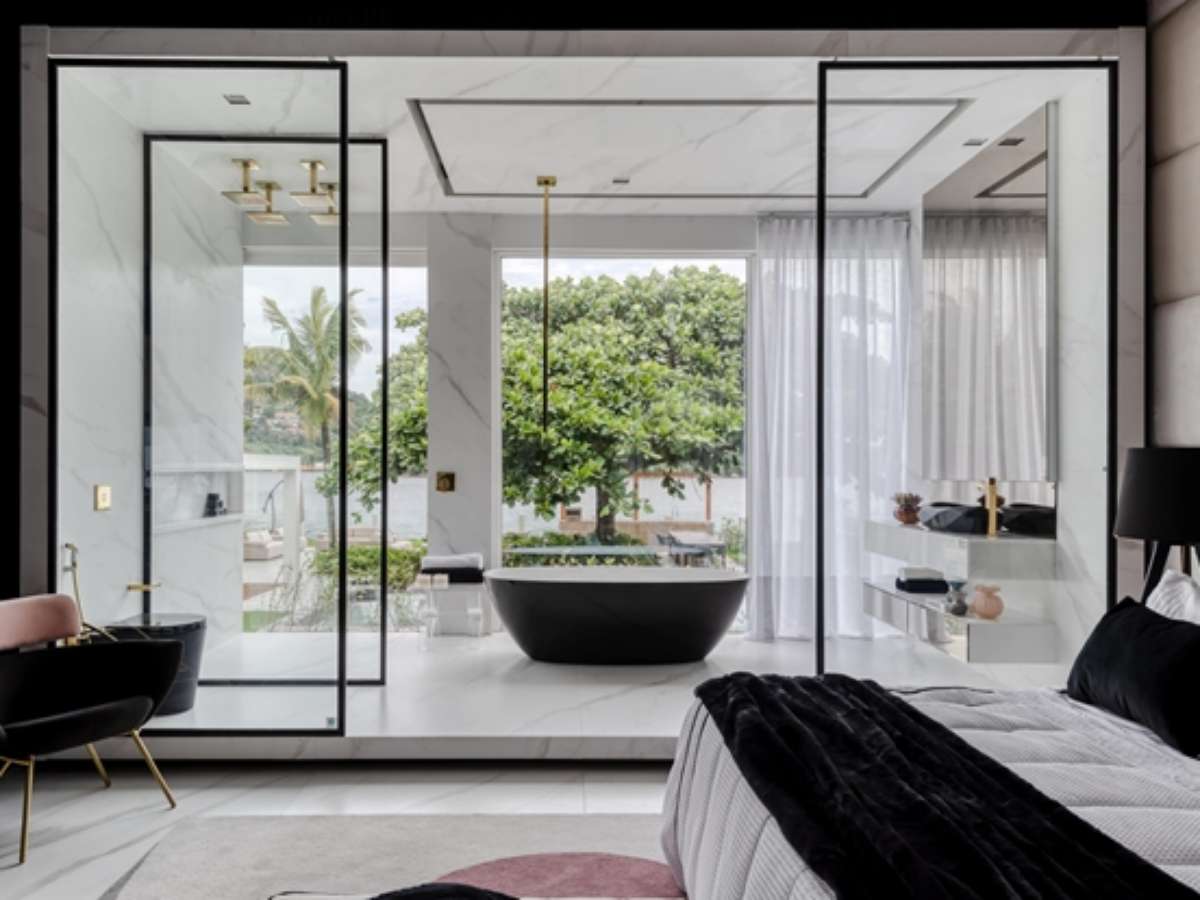 Fora das quatro paredes: inspirações de ambientes integrados com vidros e espelhos