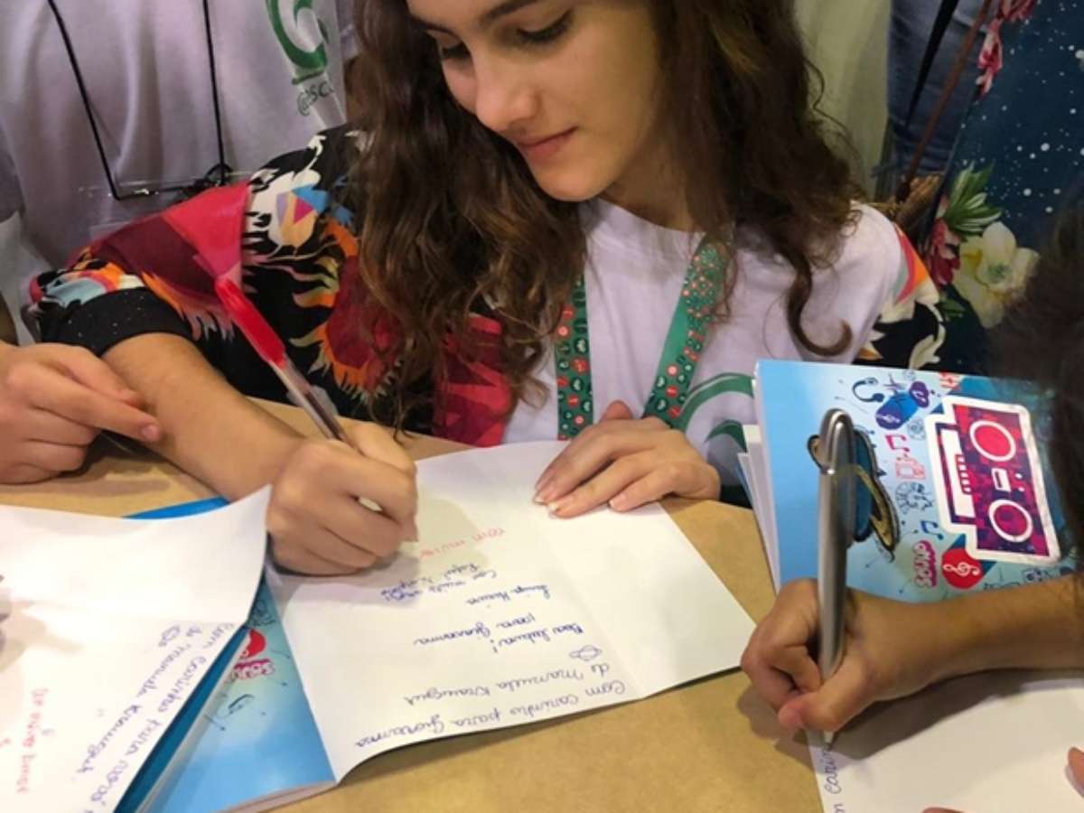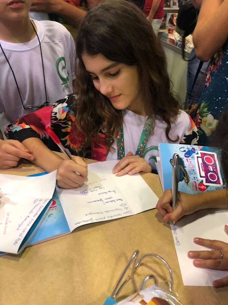 O primeiro fim de semana da 19ª edição da Bienal do Livro trouxe a novidade de um pavilhão totalmente dedicado às crianças. E não só para divertir a criançada, como também revelar novos talentos no universo infantojuvenil. No domingo, dia 01 de setembro, os autores Gabi Amaral, responsável também pelas ilustrações, Rafael Simplício, Marina Malfacini, Luiza Moreira, Manu Krawczuk e Gabriel Sol participaram da tarde de autógrafos para lançar o livro Escola Fm - Diversão e conhecimento para toda vida.