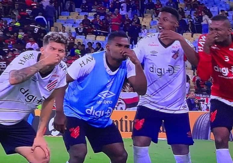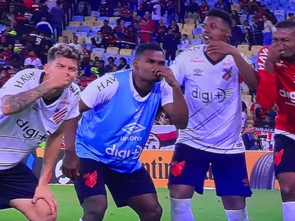 Após eliminar a equipe do Flamengo no jogo ao vivo pela Copa do Brasil, na noite dessa quarta-feira (17), os jogadores do Athletico Paranaense, ainda no gramado do Maracanã, fizeram uma provocação ao atacante flamenguista Gabigol e ao time do mengão.