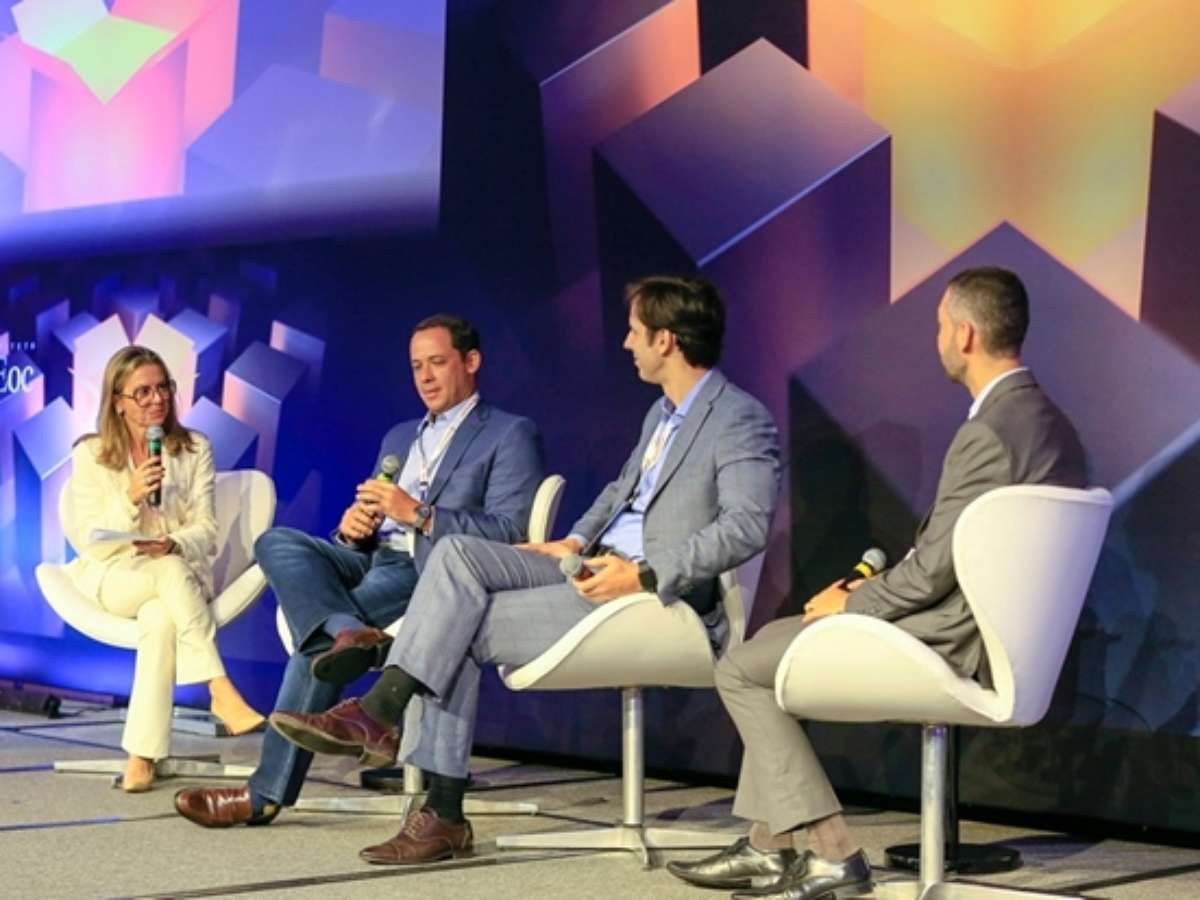 Os convidados Alceu Meinen (Sicredi), Ewerton Chaves (Banco Original) e Luciana Luise (Banco Carrefour) debateram o tema 'experiência do usuário: atendimento digital ou humano?', sob mediação de José Augusto de Rezende Júnior (J.A.Rezende).