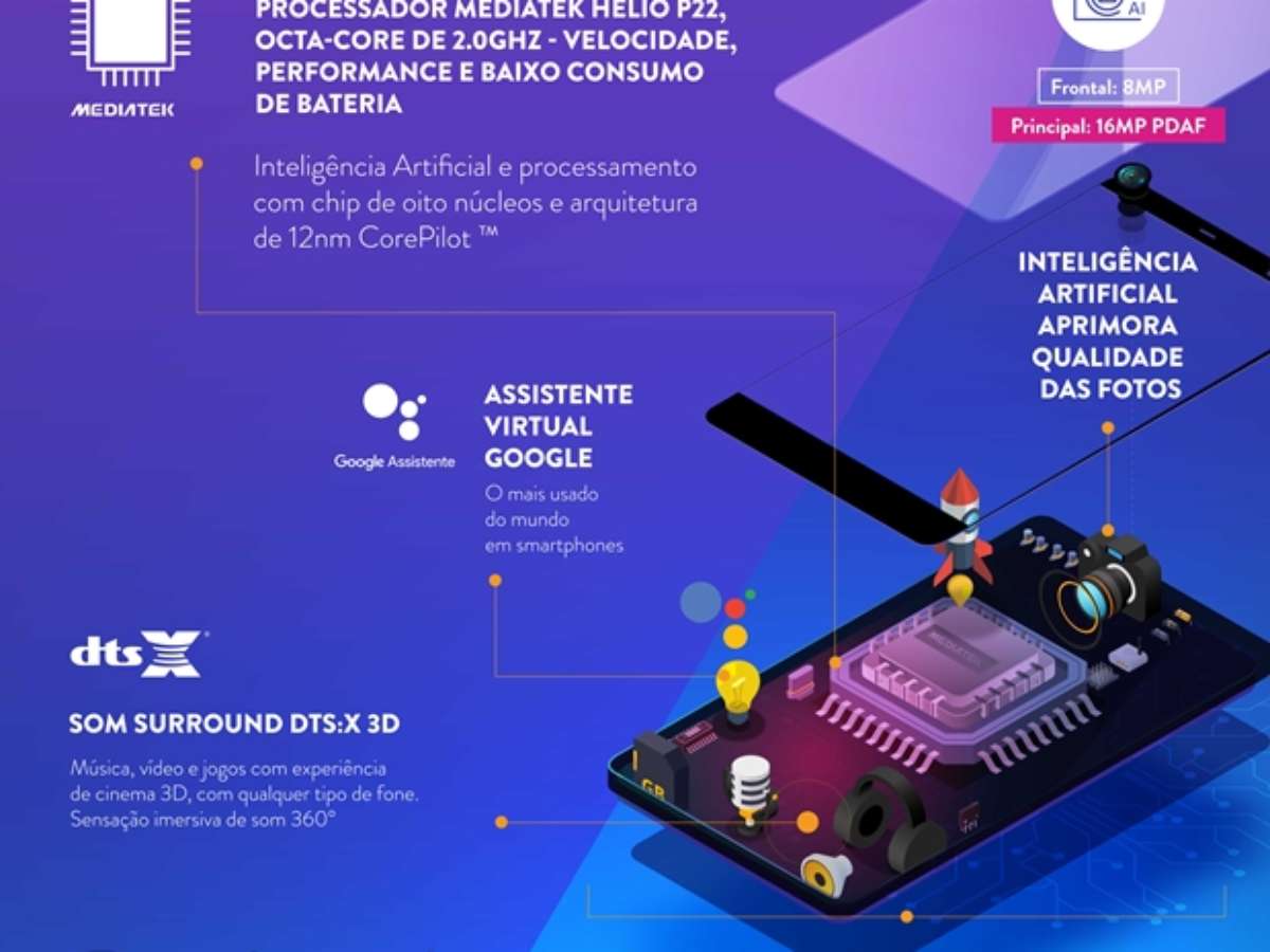 O processador que dá suporte a essa tecnologia é o MediaTek Helio P22, Octa-Core de 2.0GHz, que permite oferecer aos smartphones inteligência artificial e processamento com chip de oito núcleos. "O chip entrega velocidade, performance e baixo consumo de bateria", destaca Samir Vani, country manager da MediaTek no Brasil. Desenvolvido com a tecnologia TSMC 12nm FinFET, o Helio P22 combina o processamento de maior eficiência energética nos smartphones Android com a tecnologia CorePilot, da MediaTek, permitindo alto desempenho sustentável e economia de energia.