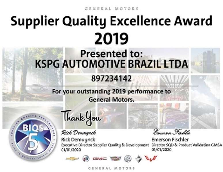 Marca pemium na fabricação de componentes motor com presença mundial, atendendo às principais montadoras, Kolbenschmidt (KS) recebe o Prêmio de Excelência em Qualidade de Fornecedores da General Motors.