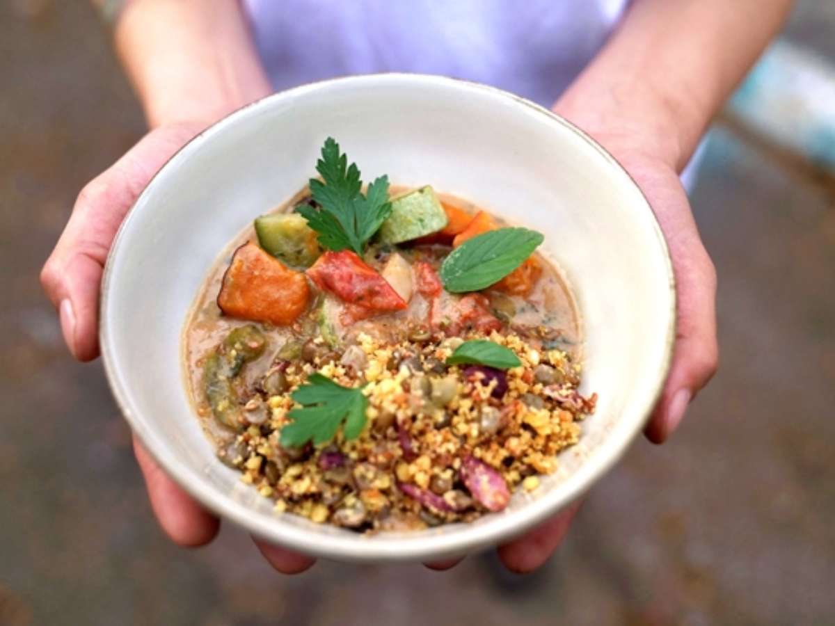 Prato Bel Coelho: Legumes ao leite de coco com farofa de farinha d'água e lentilha (R$ 20,80)