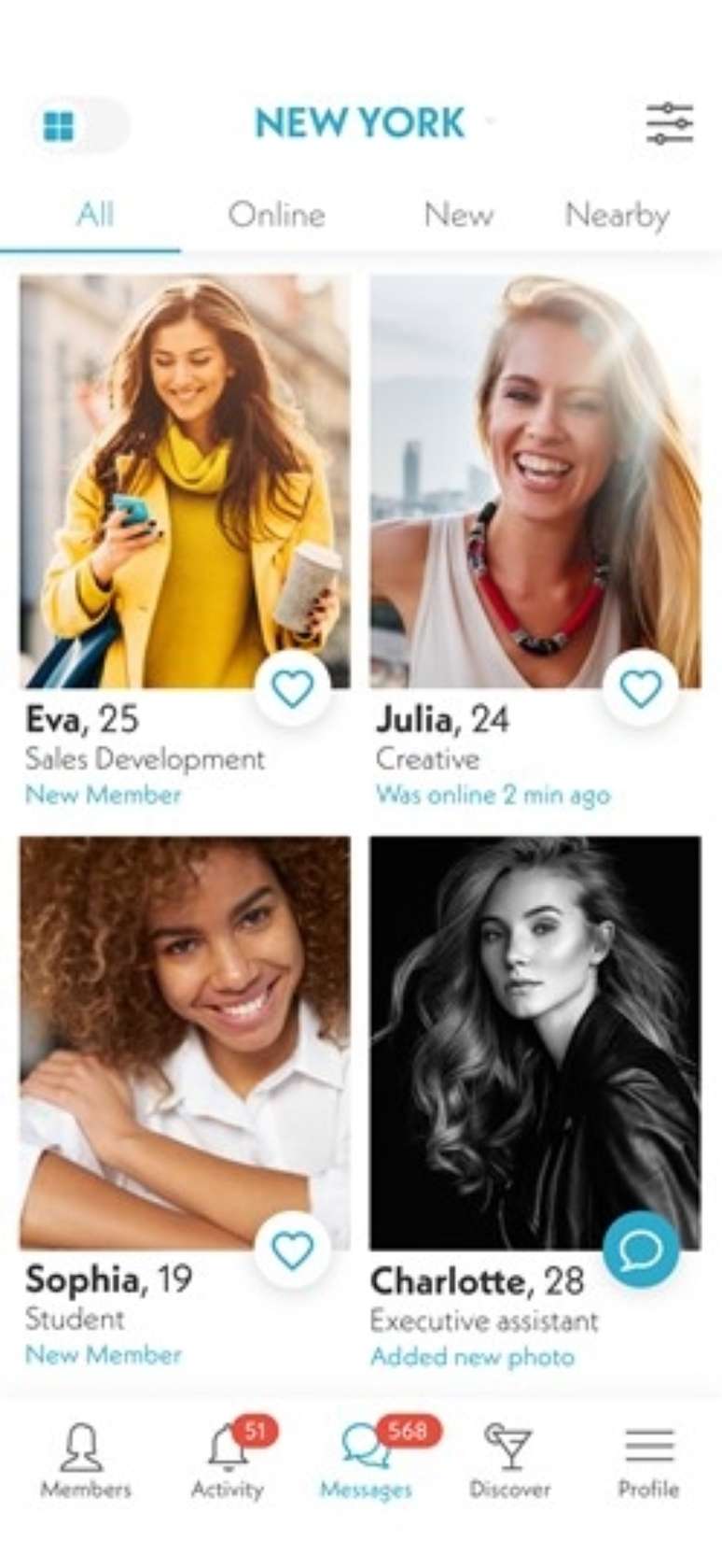 O público feminino do app em ambas as cidades é composto por profissionais da área da saúde, comunicação, direito, finanças e tecnologia. Já o time masculino em busca de um relacionamento é formado por profissionais de finanças, tecnologia, engenharia, consultoria e mídia.