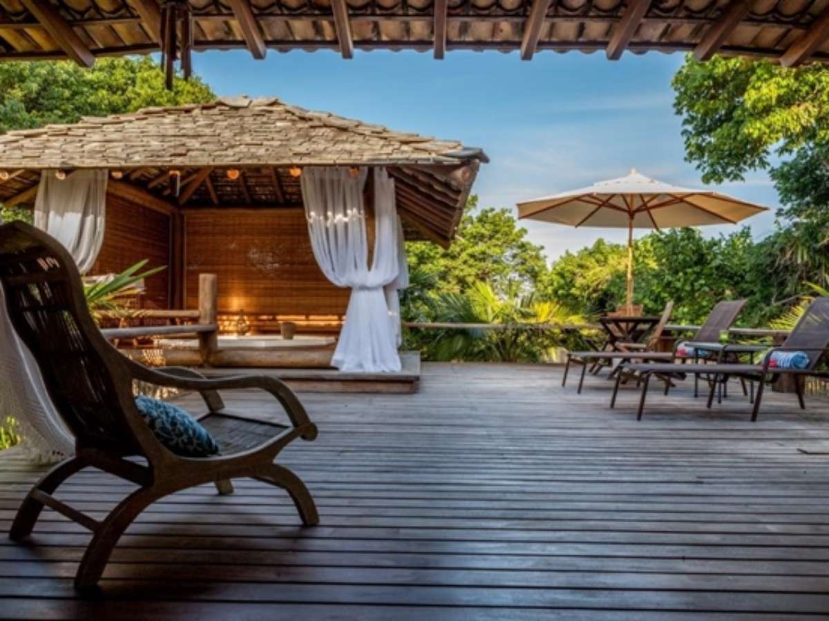 Cercada pelo verde da Mata Atlântica e com o pé na areia, a pousada conta ainda com piscina de borda infinita, deck com espreguiçadeiras, restaurante e bar de praia.