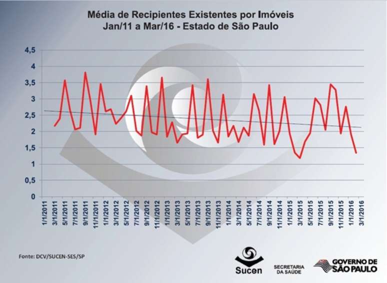 De acordo com levantamentos realizados entre 2011 e 2016 pela SUCEN, Superintendência de Controle de Endemias do Estado de São Paulo, verificou-se que em média continuam a serem encontrados 4 criadouros do Aedes aegypti, mosquito transmissor da Dengue, Zika e Chikungunya. Esse dado vai no mesmo sentido da percepção de especialistas, de que ao menos 80% dos criadouros do mosquito da dengue estão dentro das casas e em volta delas, nos ambientes como jardins, quintais e varandas.
