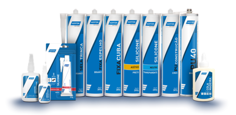 Indicados entre outros, para trabalhos de pintura, reparos domésticos e, até mesmo, para artesanato, a nova linha de selantes e adesivos Norton conta com Adesivo Instantâneo, Sela Trinca, Fixa Cuba, Fixa Espelho, Silicone Neutro, Silicone Acético, Silicone Alta Temperatura, PU, PU 40 e Cola Madeira.