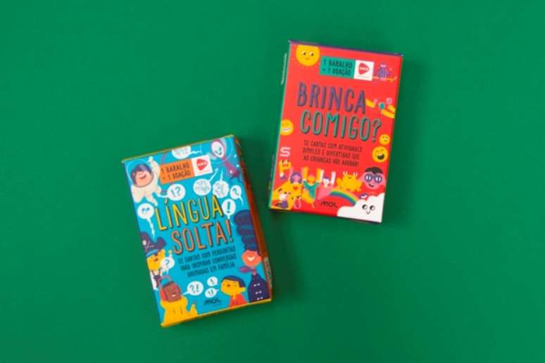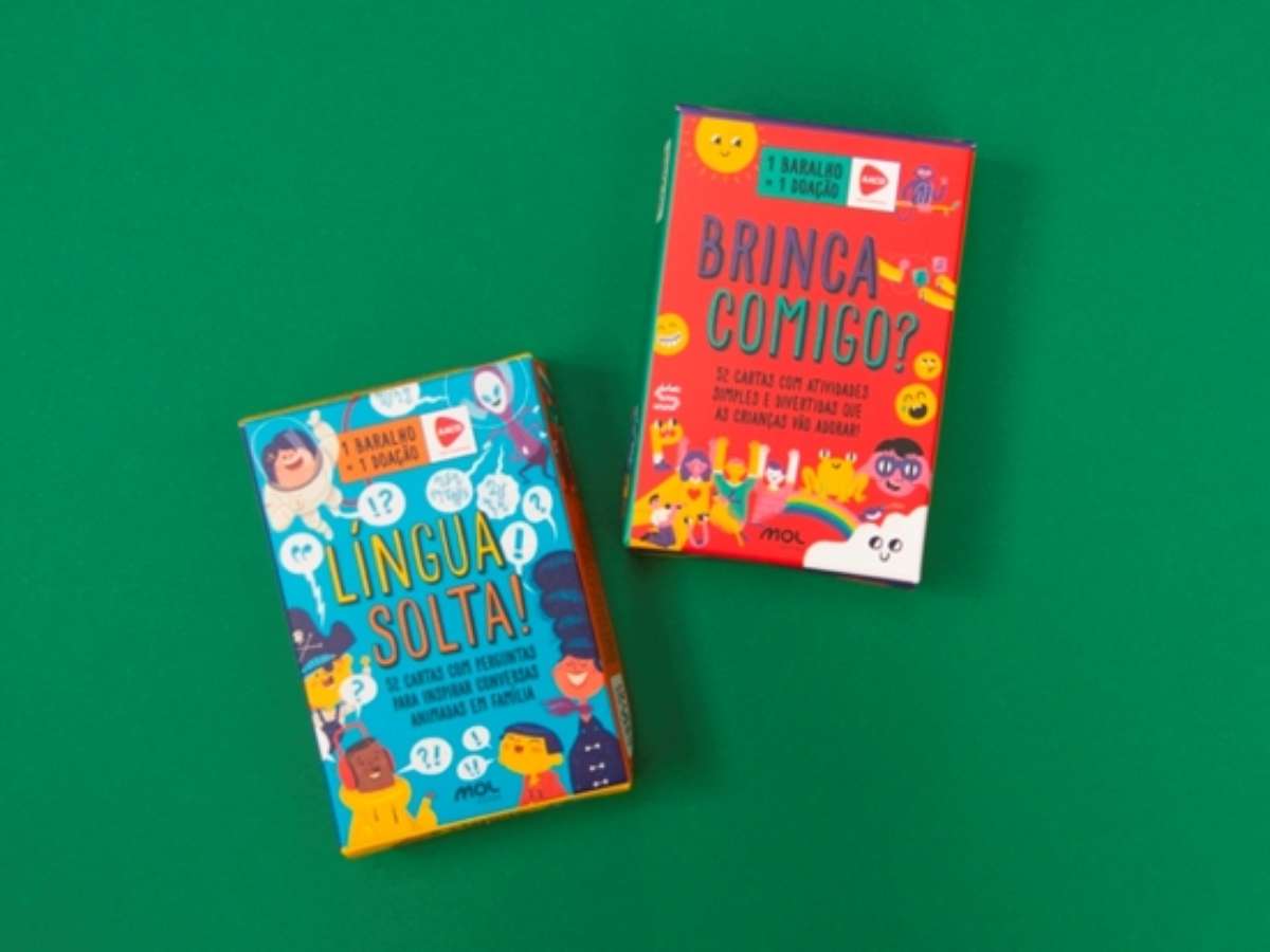 Cada baralho apresenta 52 atividades relacionadas com seus respectivos temas: Brinca Comigo? traz brincadeiras que não precisam nem de papel e caneta para distrair grandes e pequenos, enquanto Língua Solta! propõe perguntas para animar as conversas em família. São desafios que envolvem criatividade e conversas divertidas para qualquer momento, como volta de viagens ou tardes chuvosas em casa nas férias. Por exemplo: "se você fosse prefeito, como melhoria a vida das crianças?" ou "um participante faz uma encenação muda e o outro brinca de dublá-lo". As brincadeiras podem ser feitas com duas pessoas, mas quanto mais gente melhor, e não há limite específico de idade - o importante é brincar.