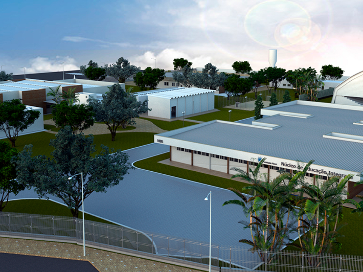 A transformação evolutiva do Núcleo de Educação Integrada perpassa tanto a formação dos docentes, atuais e novos contratados, até a reestruturação das edificações. Serão dois prédios de 4mil m2 alocados em 50mil m2, formando um complexo educacional que envolve mais de 30 salas ambiente, laboratórios e ateliês, espaços de convivência, além um ginásio poliesportivo com capacidade para 300 lugares, um campo de futebol com medidas semioficiais e uma quadra de vôlei de areia. Respeitando cada fase educacional e idade dos alunos, uma das edificações vai abrigar as crianças da Educação Infantil e do Ensino Fundamental I e, em outro bloco, estarão os adolescentes e jovens do Ensino Fundamental II e Ensino Médio.