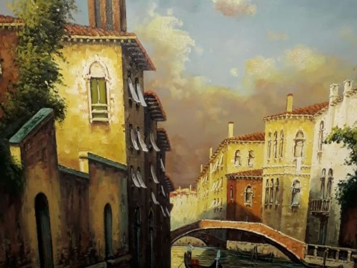 O quadro que aparece na foto é o "Veneza" - Óleo sobre tela