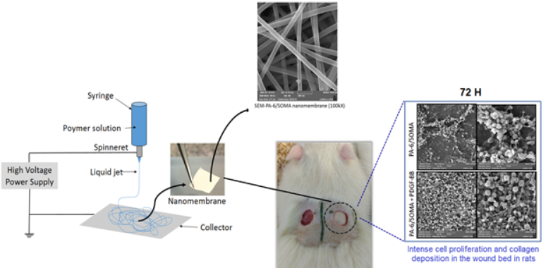 Sobre esse projeto, Ernzen explica que "para a regeneração de feridas profundas em ratos, foi usado um polímero [PA6] quimicamente modificado com óleo de soja maleinizado [SOMA], que favoreceu a proliferação celular e conferiu tenacidade ao polímero, característica que contribuiu para a manipulação e a conformação adequada no leito da ferida".