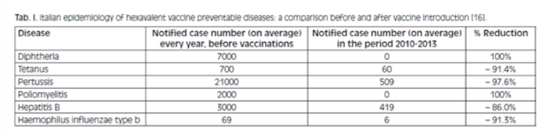 Em diversos países, a hexavalente já é o padrão para vacina, inclusive no sistema público de saúde. De acordo com a Sociedade Italiana de Neonatologia, os números de casos dessas doenças reduziram consideravelmente após a administração da vacina, conforme a tabela abaixo.