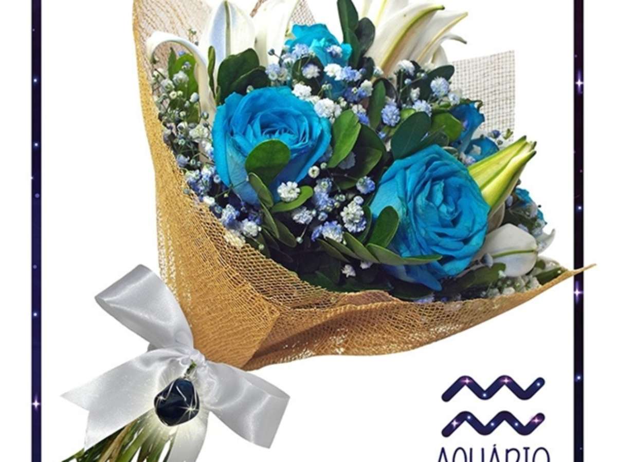 A sugestão para o signo de aquário é o buquê de Lírios e Rosas em tons de azul e branco. Essa combinação é capaz de se tornar uma lembrança inesquecível para os nativos deste signo.