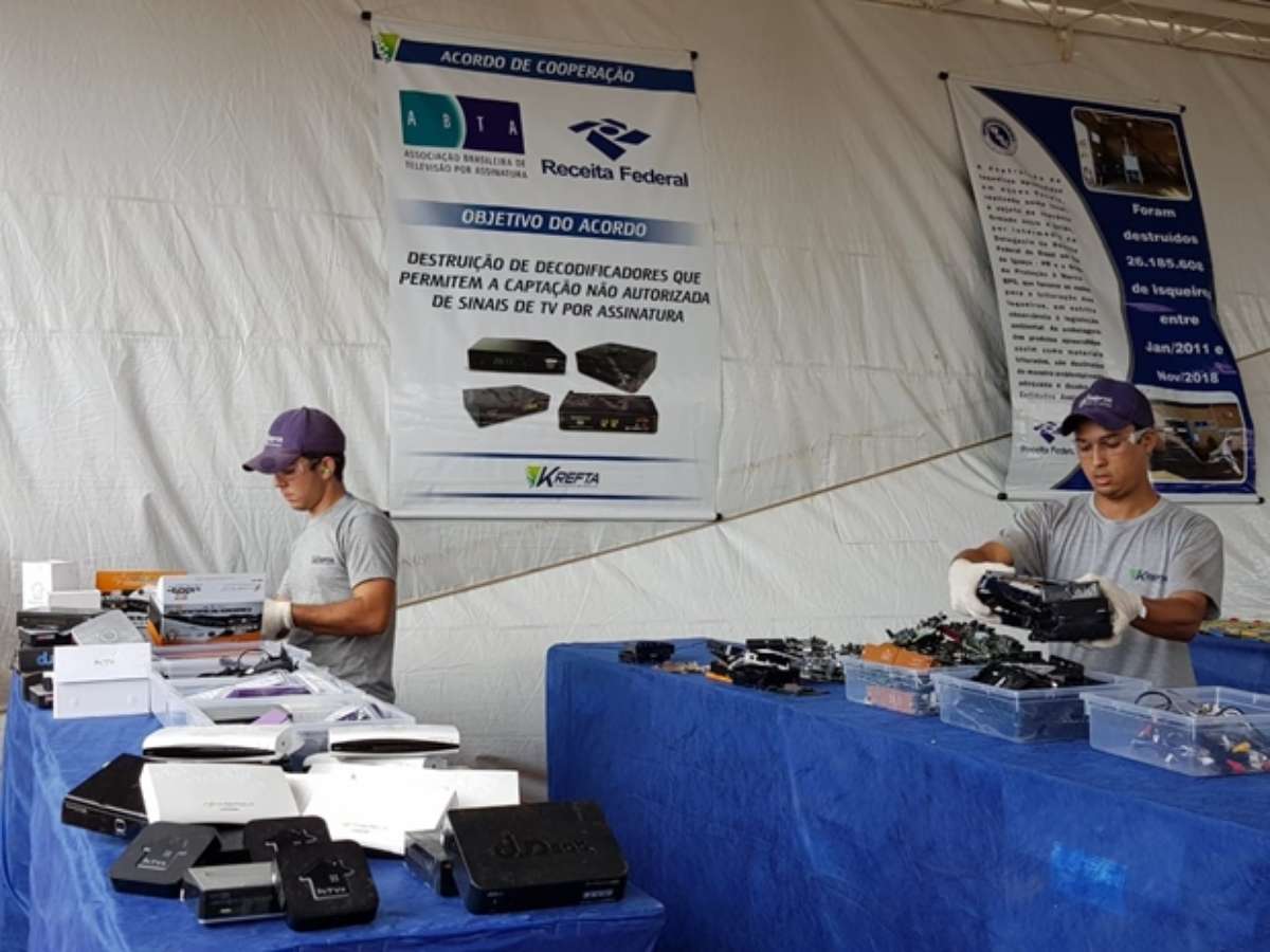 A Receita Federal de Foz do Iguaçu chegou hoje à marca de 112 mil decodificadores piratas de TV paga destruídos, depois de apreendidos na fronteira do Brasil com o Paraguai. O 23° Mutirão Nacional de Destruição de Mercadorias Apreendidas, que aconteceu nesta quarta-feira (5/6), contou com o apoio ABTA (Associação Brasileira de Televisão por Assinatura), por meio de um termo de cooperação, iniciado em 2016, para que esses equipamentos ilegais sejam inutilizados.