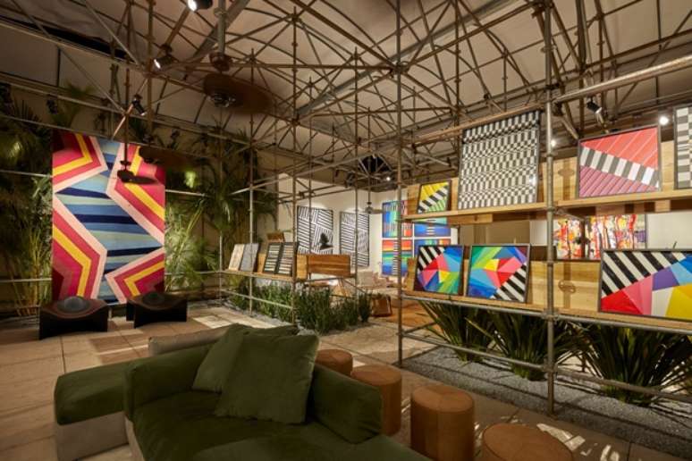O espaço Estúdio Galeria do artista plástico Marcos Paschoalin e do arquiteto Danieu Tavares foi todo projeto com andaimes multidirecionais pela empresa Altura Andaimes. "Esse é o diferencial do andaime multidirecional. Ele permite que você faça qualquer tipo de estrutura, em qualquer tamanho, vencendo obstáculos como degraus ou desníveis, com muita facilidade e rapidez", diz Adriana Tavares, sócia-diretora da empresa.