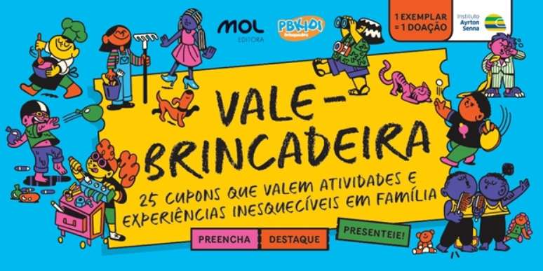 Em 2017, a rede PBKIDS realizou sua primeira parceria com a Editora MOL com o lançamento do livro "101 coisas para fazer com as crianças antes que elas cresçam", que já arrecadou mais de R$ 200 mil para o Instituto Ayrton Senna. Agora, o "Vale-brincadeira" chega com 25 cupons e cada um oferece quatro sugestões de atividades relacionadas ao mesmo tema. Por exemplo: no cupom de esportes, é sugerido assistir a uma partida de futebol no estádio ou até mesmo montar um campeonato com os vizinhos. Após marcar uma das opções, o adulto assina e destaca o cheque, comprometendo-se a realizar o combinado com as crianças na data escolhida.