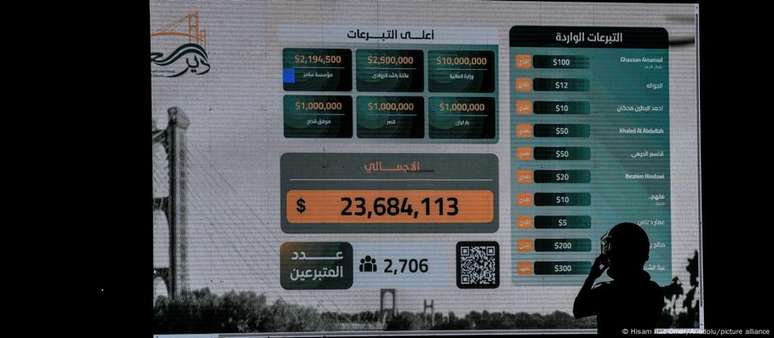Campanhas para reerguer o país já teriam arrecadado mais de R$ 2,7 bilhões. Mas críticos querem saber como elas são geridas, de onde vem o dinheiro e como ele será investido.Diante do desafio de se reerguer após mais de uma década de guerra civil, várias cidades e distritos da Síria vêm arrecadando montantes exorbitantes por meio de campanhas de financiamento coletivo. Para alegria de uma parte da população síria — e ceticismo de outra —, o valor alegadamente levantado desde agosto beira os 500 milhões de dólares (R$ 2,7 bilhões), de acordo com estimativas de reportagens da imprensa local consultadas pela DW.