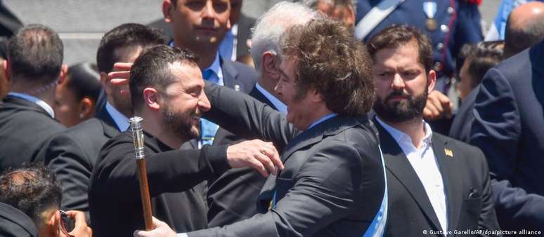 Em dezembro de 2023, o presidente ucraniano, Volodimir Zelenski, fez sua primeira viagem à América Latina desde o começo da guerra. Na ocasião, o líder esteve presente na posse de Milei, que fez uma série de declarações em apoio à Ucrânia, e anunciou que planeja uma cúpula regional para angariar apoio à Kiev.