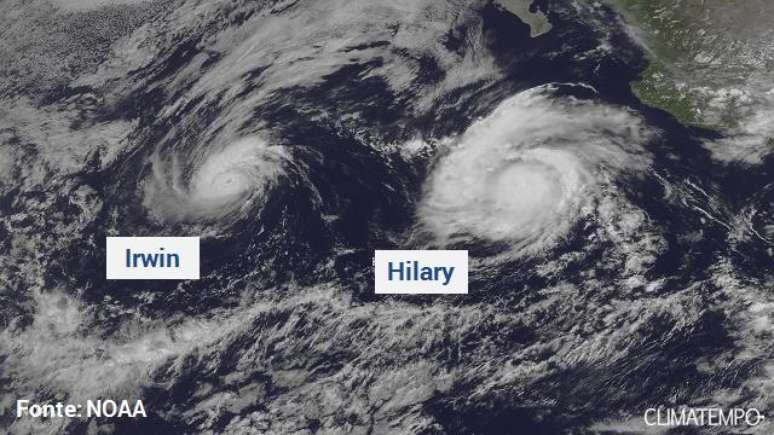 Irwin está mais organizado do que Hilary e mostrava o olho relativamente bem formado nesta terça-feira, 25. Porém, no começo da noite desta terça, Hilary continuava mais rápido e com ventos mais fortes do que Irwin.