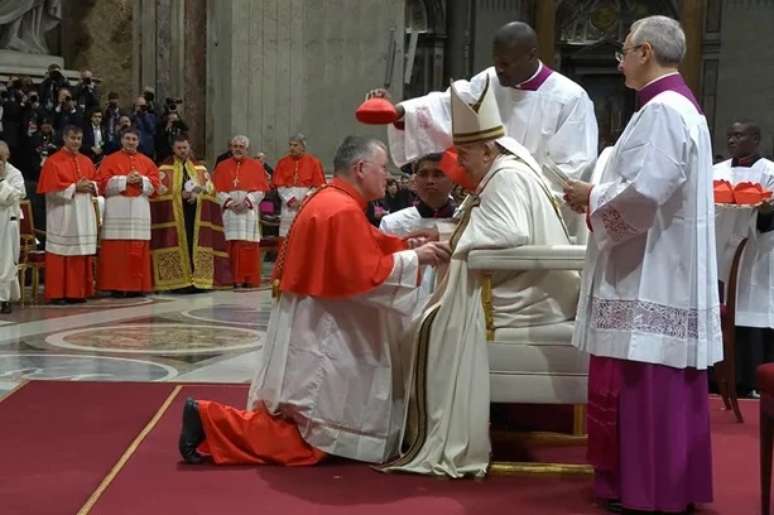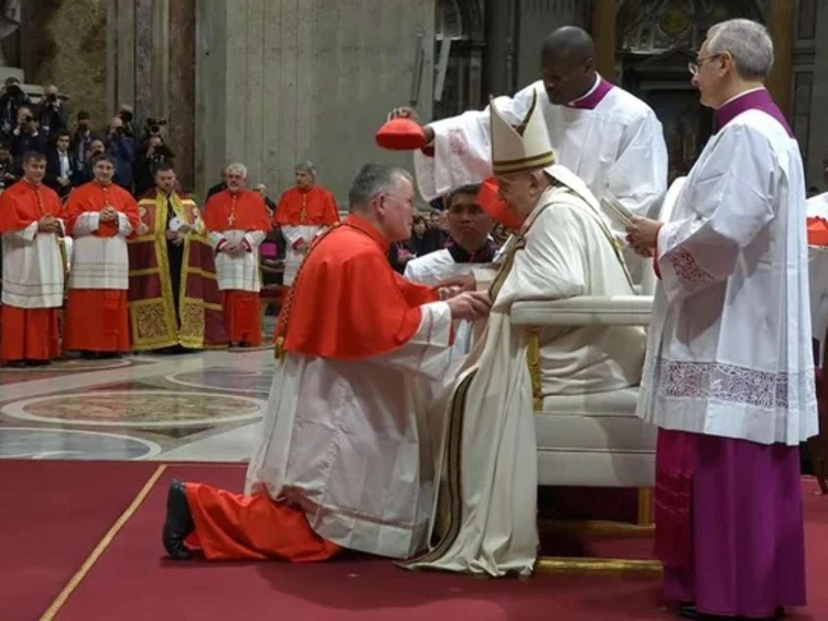 A cerimônia, que durou cerca de 1h30min, seguiu o rito tradicional, incluindo orações, a leitura do evangelho, a proclamação oficial dos nomes dos novos cardeais e a entrega dos símbolos que representam a nova função no Colégio Cardinalício: o barrete vermelho, o anel cardinalício e a bula de criação. A cor vermelha, tradicionalmente, simboliza o compromisso dos cardeais em defender a fé, mesmo sob o risco de martírio.