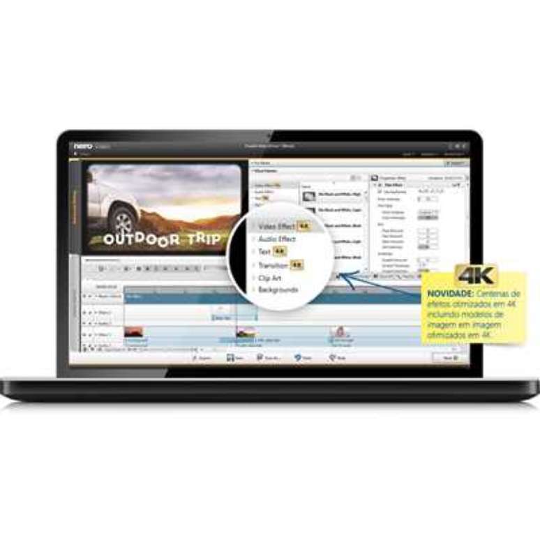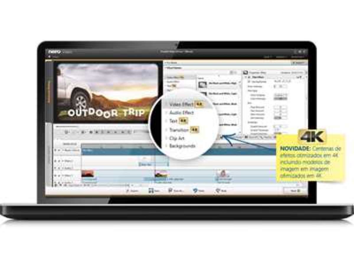 A qualidade de saída é outro destaque. O Nero Vídeo 2017 permite que o filme seja salvo em dezenas de formatos, cada qual adequado a um tipo de visualização ou equipamento. Melhor ainda: a partir do PC, os vídeos podem ser enviados direto, via wi fi, para qualquer equipamento da casa, incluindo a TV. E, para quem exige simplesmente o máximo, o programa permite que o vídeo seja salvo em formato 4K, de definição tão alta quanto do cinema, ideal para as SmartTVs de hoje em dia. Nesse sentido, a Nero caprichou, incluindo mais de 100 efeitos, modelos de imagens e transições especiais para 4K.