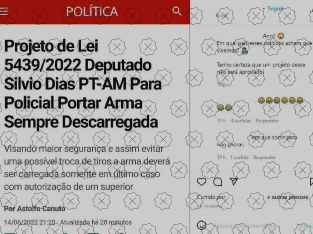 É falso que um deputado federal do PT do Amazonas chamado Silvio Dias tenha proposto um projeto para que policiais andem sempre com armas descarregadas, como afirmam postagens nas redes sociais. Não existe um deputado petista com esse nome nem há proposta com esse texto, ou com o número 5.439/2022, na Câmara dos Deputados.