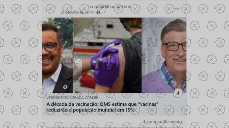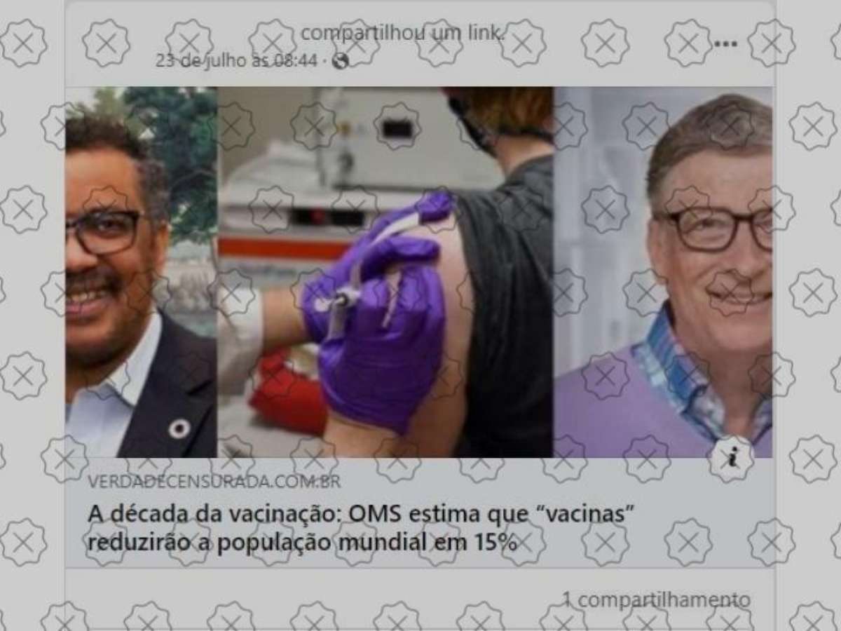 A OMS (Organização Mundial da Saúde) não estimou que as vacinas reduzirão a população mundial em 15%, como afirmam postagens nas redes sociais (veja aqui). Em resposta ao Aos Fatos, a organização afirmou que jamais fez tal alegação, que ela não foi publicada por fonte confiável e que os benefícios das vacinas superam os riscos. A afirmação falsa tem como base uma fala do analista financeiro David Martin, que propaga outros tipos de desinformação sobre imunizantes.