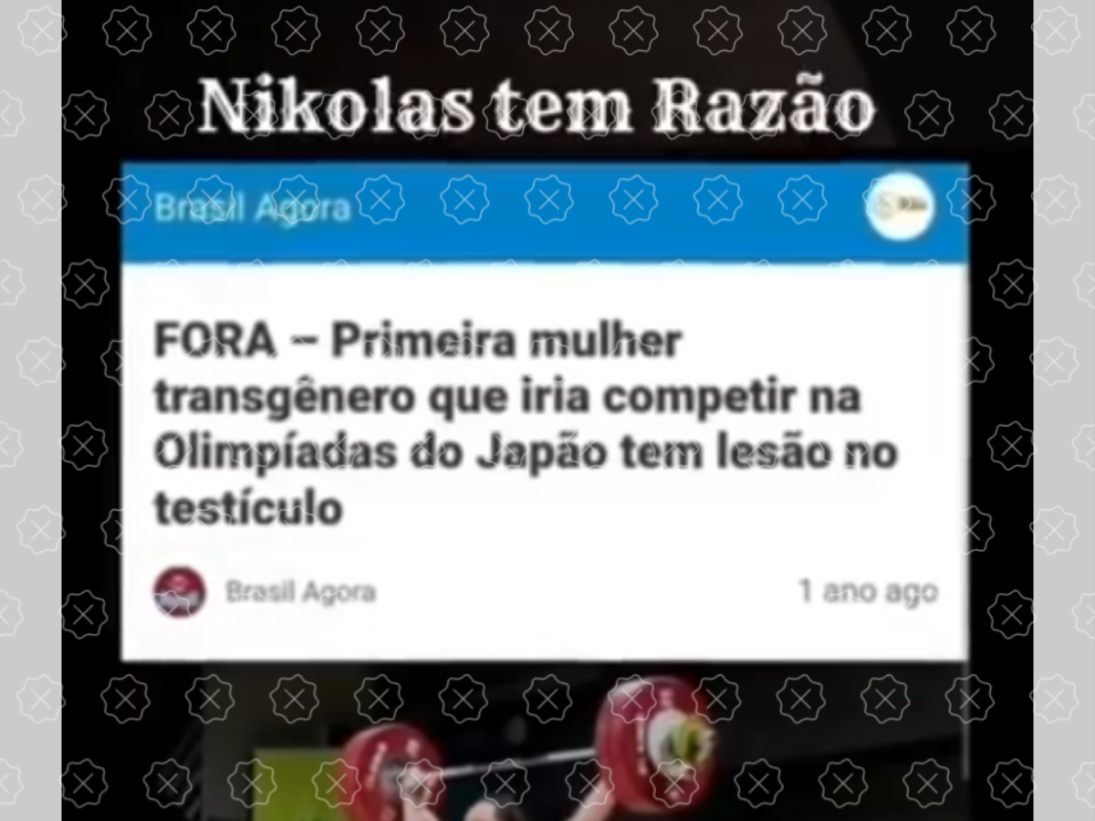 É falso que a halterofilista neozelandesa Laurel Hubbard, que é uma mulher trans, deixou de participar da Olimpíada de Tóquio, em 2021, por conta de uma lesão no testículo. A peça de desinformação que circula nas redes brasileiras traduz um texto transfóbico publicado por um site satírico americano. Além de não ter sofrido a lesão citada, a atleta conseguiu participar da competição, mas não se classificou para as etapas finais.