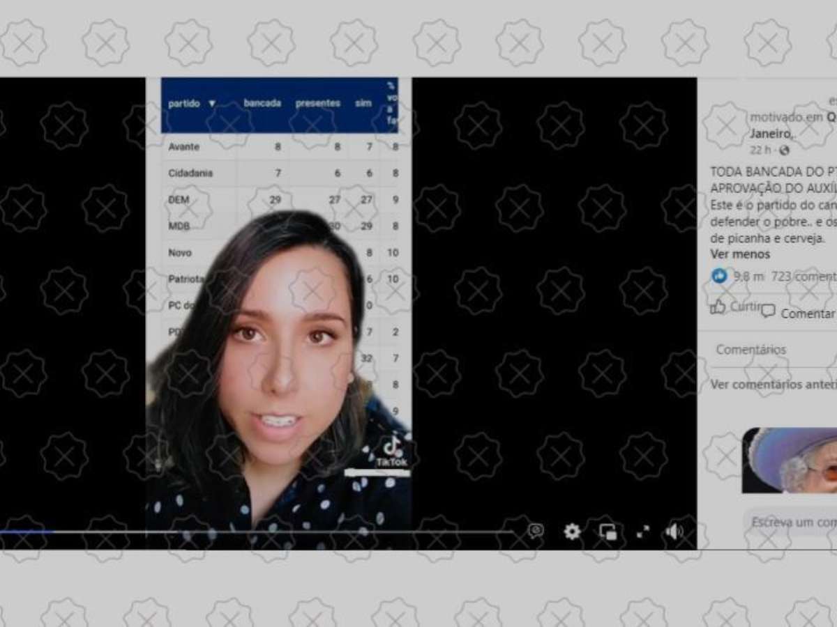 A autora do vídeo desinformativo mostra, na verdade, o placar da votação da PEC 186/19, conhecida como PEC Emergencial, aprovada em março de 2021. O texto permitiu ao governo descumprir regras fiscais, como o teto de gastos. Dessa forma, foram liberados R$ 44 bilhões do Orçamento da União para a volta do pagamento do Auxílio Emergencial de R$ 600 por mês, interrompido em dezembro de 2020. A proposta, contudo, não detalhava valores, duração e condições de acesso ao programa.