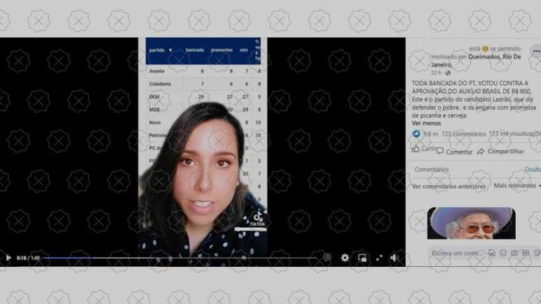 A autora do vídeo original se apresenta nas redes sociais como Mayhara Santana. No início da gravação, ela diz que o TSE (Tribunal Superior Eleitoral) proibiu o presidente Jair Bolsonaro (PL) de falar que o PT votou contra o Auxílio Brasil. De fato, na quarta-feira (19), a corte determinou que o presidente parasse de disseminar a desinformação no programa eleitoral.