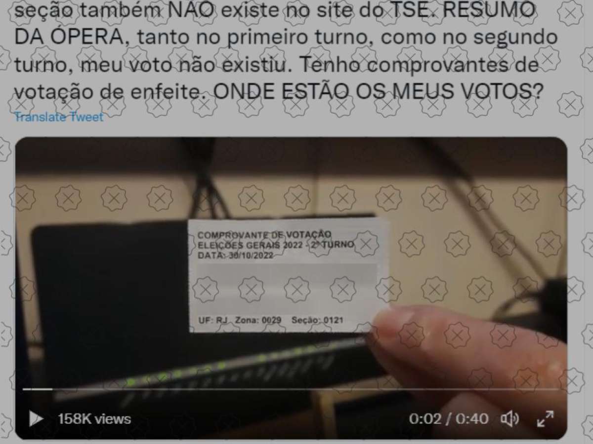 Uma eleitora engana ao afirmar que seu voto não foi contabilizado porque a seção eleitoral na qual ela compareceu, em Petrópolis (RJ), não aparece no site de resultados do TSE (Tribunal Superior Eleitoral). Segundo o TRE (Tribunal Regional Eleitoral) do Rio de Janeiro, a seção 121 da zona 29 da cidade fluminense foi agregada à seção 53, o que fez com que todos os votos fossem somados. Para não ficarem duplicados, o boletim de urna que aparece no site é apenas o da seção 53.