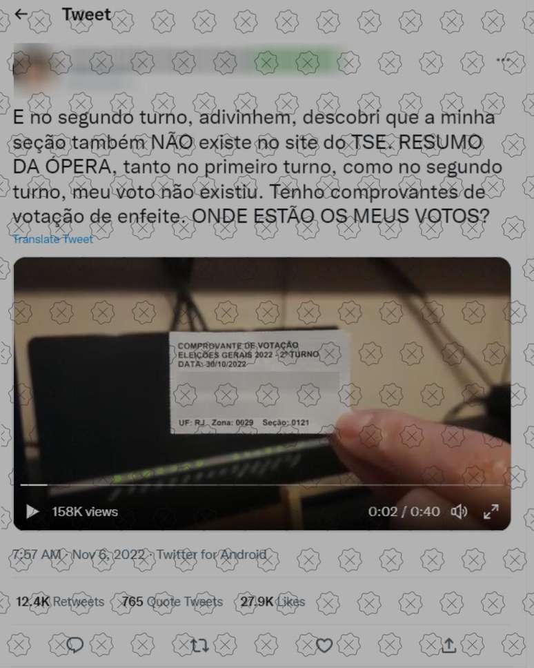 Publicações com o conteúdo enganoso acumulavam 12 mil compartilhamentos no Twitter, centenas no Facebook e circulam também no WhatsApp, no qual não é possível estimar o alcance (fale com a Fátima).