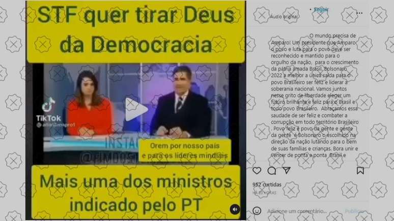 As postagens enganosas contam com ao menos 17.383 interações no TikTok e 12.500 visualizações no Instagram nesta sexta-feira (29).