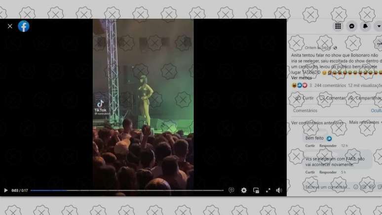 É falso que vídeo mostra Anitta agredida pelo público após criticar Bolsonaro