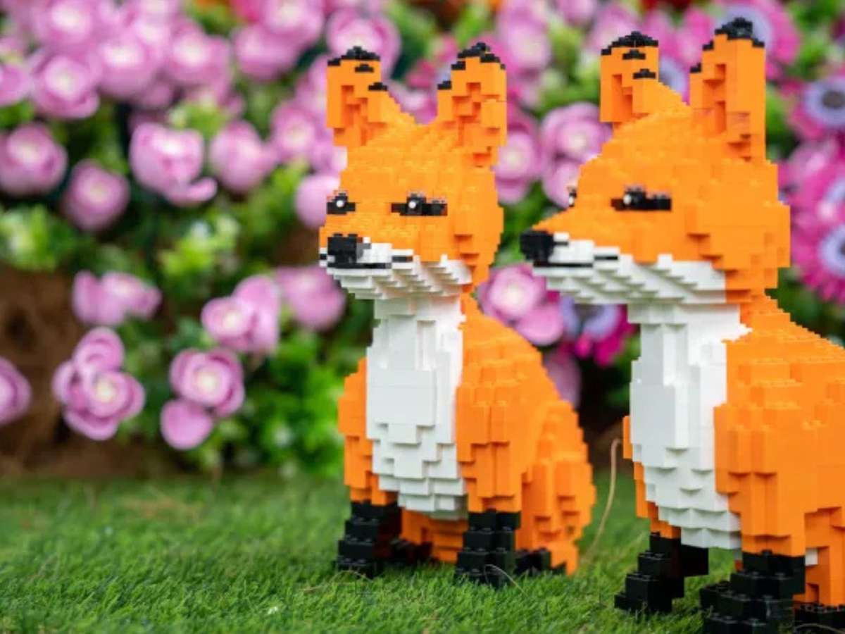 Além das plantas, o Lego Flower Garden também abriga uma variedade de pequenos animais feitos de Lego, como borboletas e pássaros, que podem ser vistos entre as flores. Um espelho d'água margeia o jardim, onde sapos e peixes, todos construídos com blocos de Lego, criam um ambiente ainda mais encantador. Esta combinação de flora e fauna proporciona uma experiência visualmente rica e educativa para os visitantes.