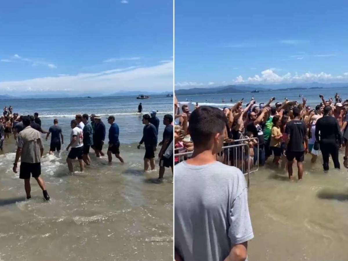 Com a chegada do presidente na praia, moradores se deslocaram para lá e mais uma vez provocaram aglomeração. A maioria dos apoiadores não usa máscara, assim como o presidente e a família.
