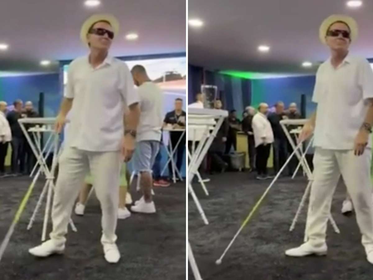 No registro, Paes usa óculos escuros e segura um objeto semelhante a uma bengala, simulando o comportamento de pessoas cegas ou com baixa visão quando buscam entender o ambiente. A cena é interrompida apenas quando a primeira-dama, Cristine Paes, se aproxima para chamá-lo para uma foto com um homem que estava no local.