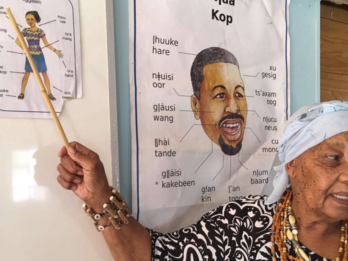 A idosa sul-africana, de 84 anos, é apenas uma de três pessoas no mundo capazes de falar fluentemente o N|uu, uma das línguas faladas pela comunidade San, também conhecida como Bushmen. Todas as pessoas pertencem à mesma família.