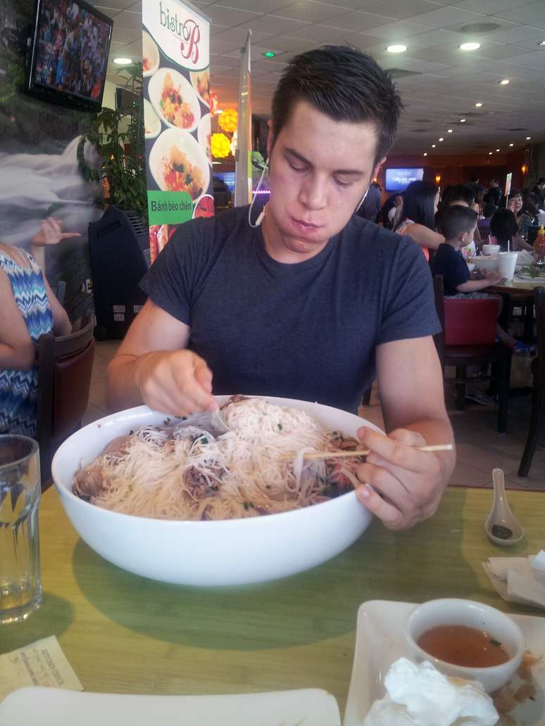 O primeiro prêmio veio em seguida, quando ganhou US$ 250 por ingerir nove sanduíches em seis minutos. Com 99 quilos, ele pratica exercícios diariamente para não engordar. Faz caminhadas, levanta peso, joga futebol e pratica hóquei na faculdade.
