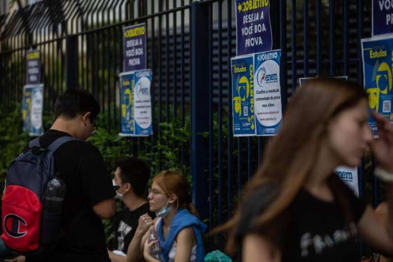 Estudantes chegam para realizar prova no segundo final de semana do Enem 2022 em faculdade na região central de São Paulo