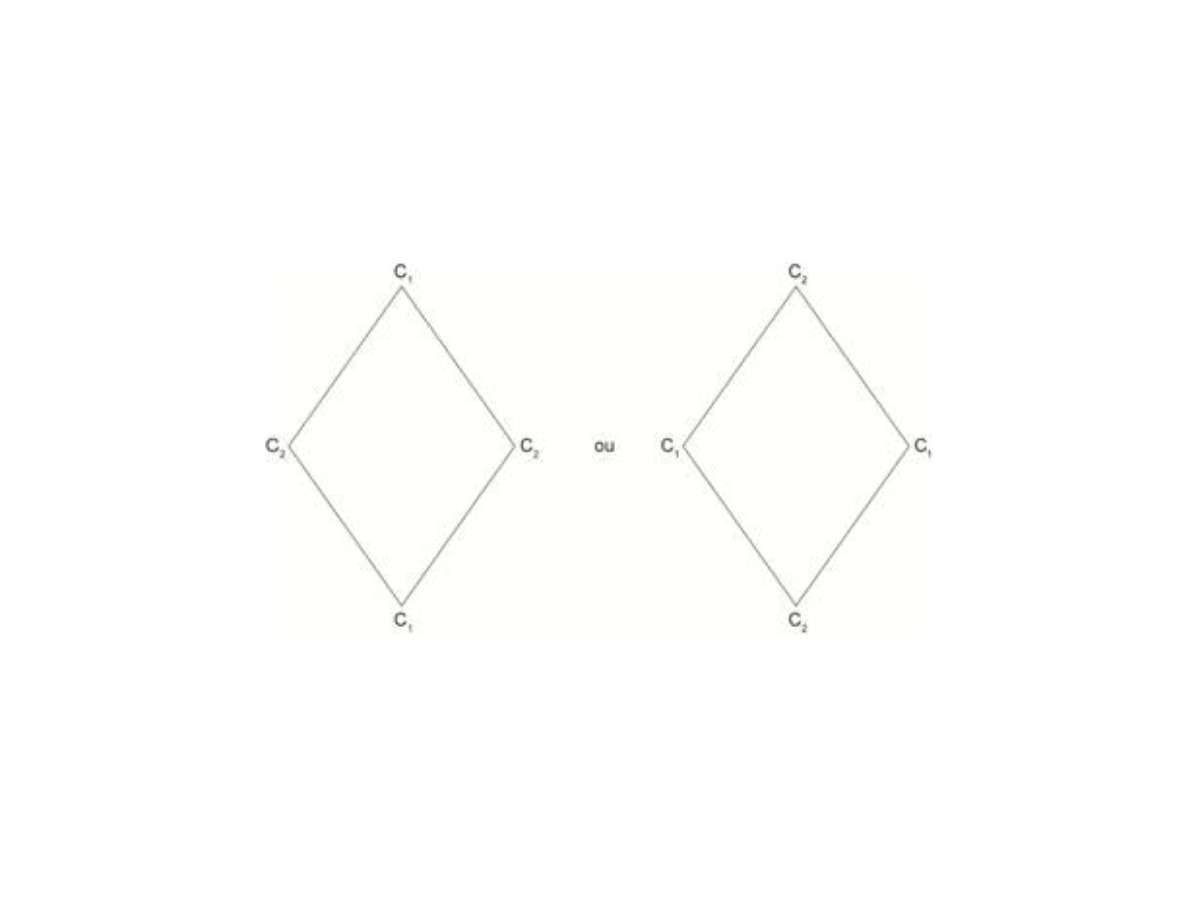 Caso1: Usando apenas duas pedras de cores diferentes em vértices opostos do losango, teremos seis possibilidades.