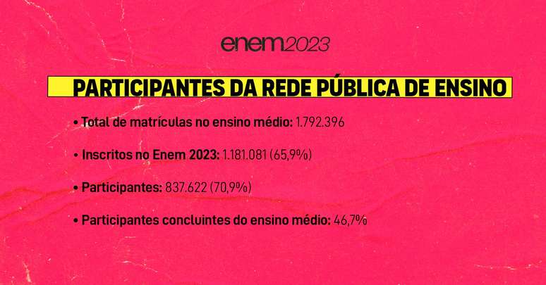 Veja, abaixo, o resumo dos números do Enem 2023 divulgados hoje (16):