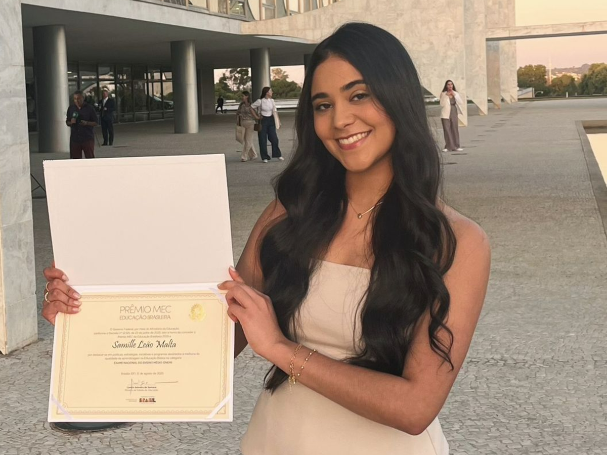 Samille Leão Malta estava na academia quando recebeu uma mensagem da mãe com a nota que tirou na redação do Exame Nacional do Ensino Médio (Enem) 2024. "Foi um choque", lembra. A jovem conquistou os tão sonhados 1.000 pontos e, depois, descobriu que foi a única estudante de escola pública a atingir a pontuação máxima naquela edição do exame. "Fiquei muito surpresa e emocionada, eu não esperava. Minha família também ficou muito feliz, todos choraram de emoção."