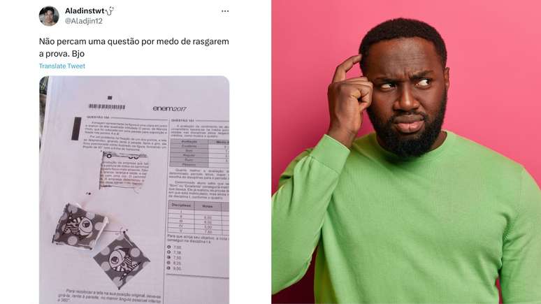 Em postagem nas redes sociais, jovem mostra que destacou pedaço da folha de prova para resolver questão de matemática