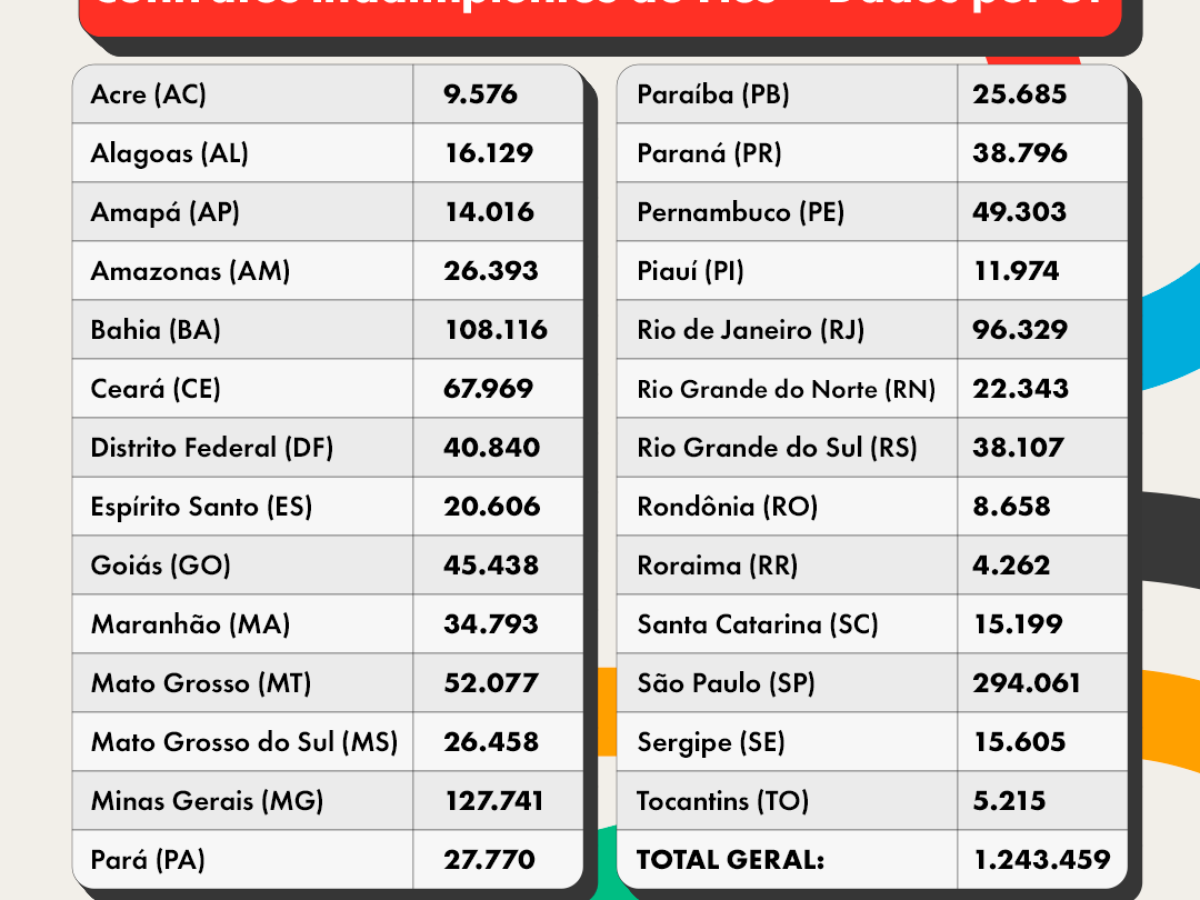 Veja a relação da quantidade de contratos inadimplentes do Fies por estado: