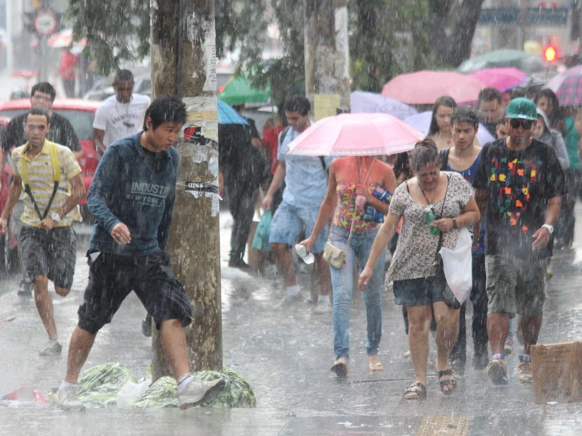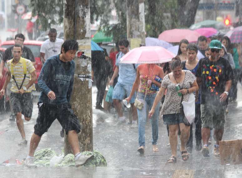 São Paulo - Muitos estudantes foram surpreendidos com a chuva no começo da tarde deste domingo - após enfrentarem um calor de 30ºC