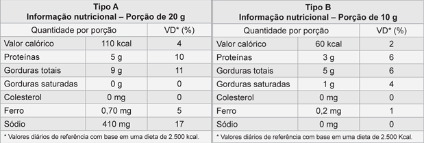 31Nas tabelas a seguir, há informações nutricionais de doistipos de amendoim.